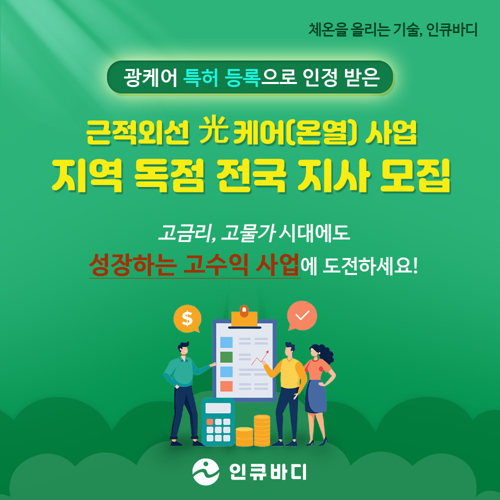 (주)인큐바디에서 지역 독점 전국 지사를 모집합니다. 독점 지역 운영 + 고부가가치 헬스케어 창업 아이템! 지금은 유병장수 시대,자가 건강관리 수요가 폭발적으로